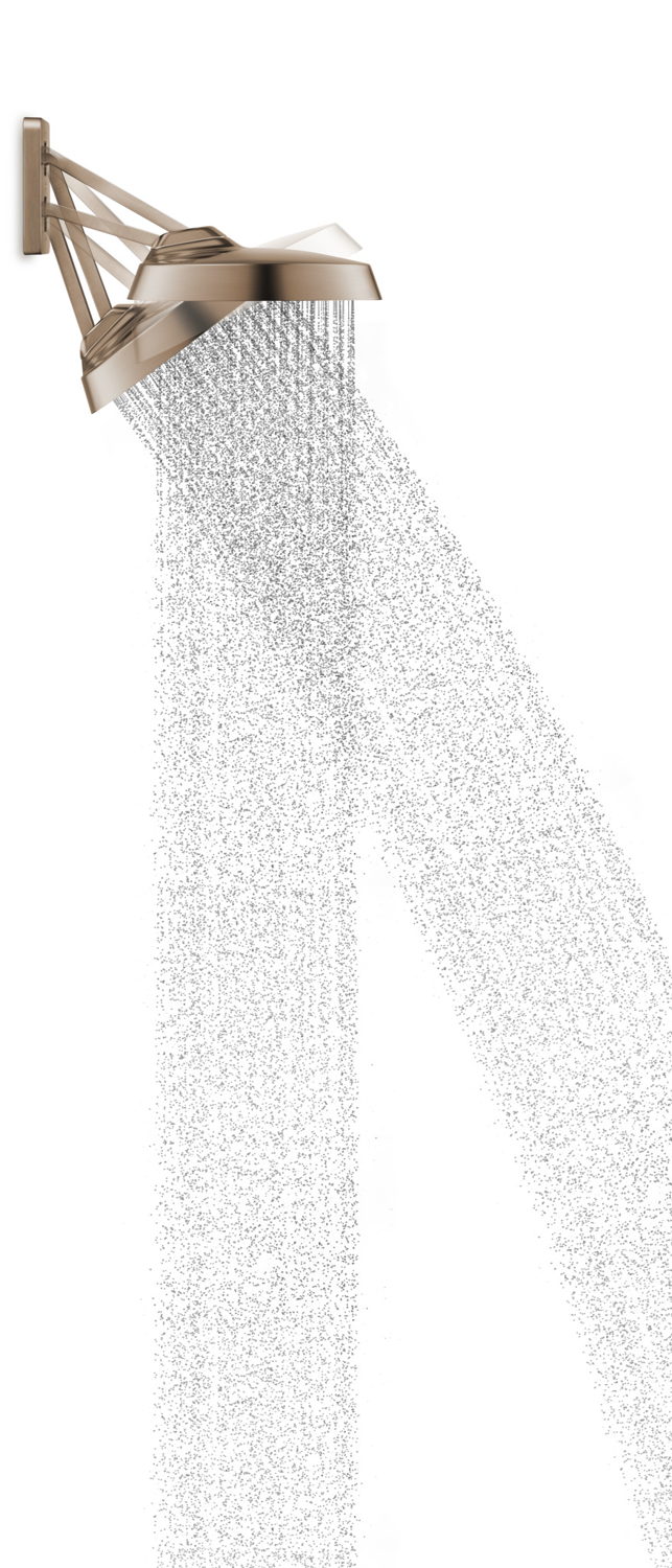 De veelzijdigheid van AXOR ShowerSphere maakt de collectie geschikt voor elke badkamer, van compacte stadsstudio tot ruime wellnesswoning. De blikvanger van de collectie is de wandgemonteerde 2-jet douche met verstelbare arm, die de waterstraal schuin positioneert en zo fungeert als hoofd- en schouderdouche. De collectie wordt aangevuld met verschillende varianten met vaste arm: een plafondgemonteerde 2-jet, een plafondgemonteerde 1-jet in twee groottes en een wandgemonteerde 1-jet in twee groottes.